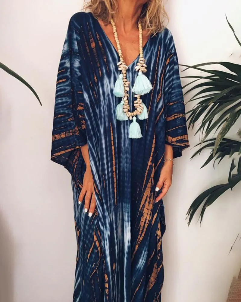 Tie-Dye Print Batwing Sleeve Loose Maxi Dress